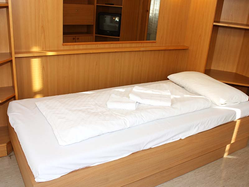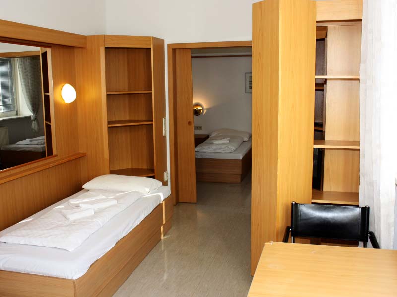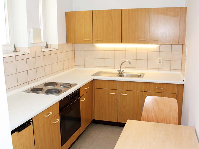 Die Studierendenwohnungen können entweder als Einzelzimmer-Wohnungen für eine Person oder als geteilte Unterkunft für zwei Studierende gemietet werden. Alle Wohnungen sind voll möbiliert und verfügen über eine eigene Küche, ein Bad sowie einen kleinen Eingangsbereich mit eingebautem Schrank.