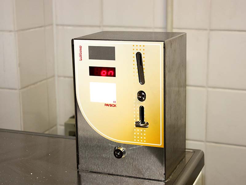 In unserem Service-Raum befinden sich mehrere Waschmaschinen (mit Münzautomat) und ein Bügelautomat, der von allen Gästen gemeinschaftlich genutzt werden kann
